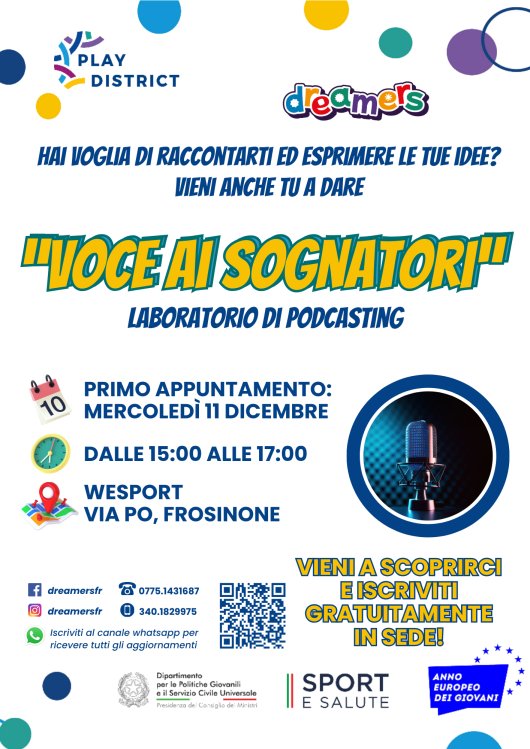 | Torna all'elencoPlay District Frosinone - “Voce ai sognatori"